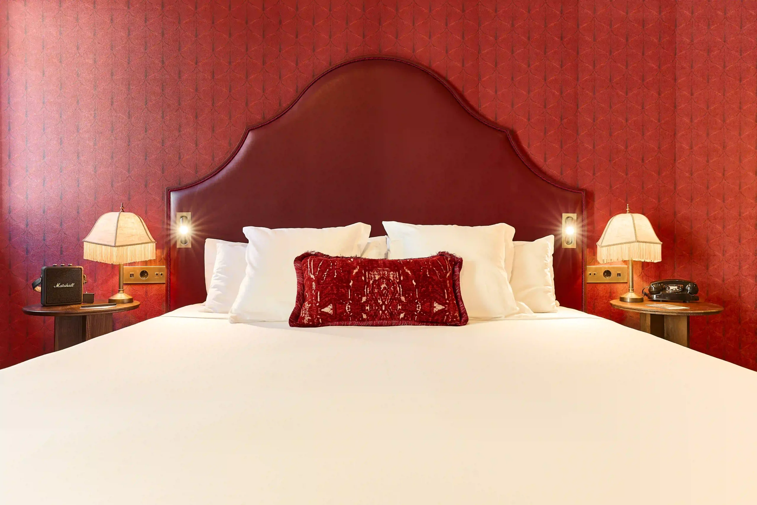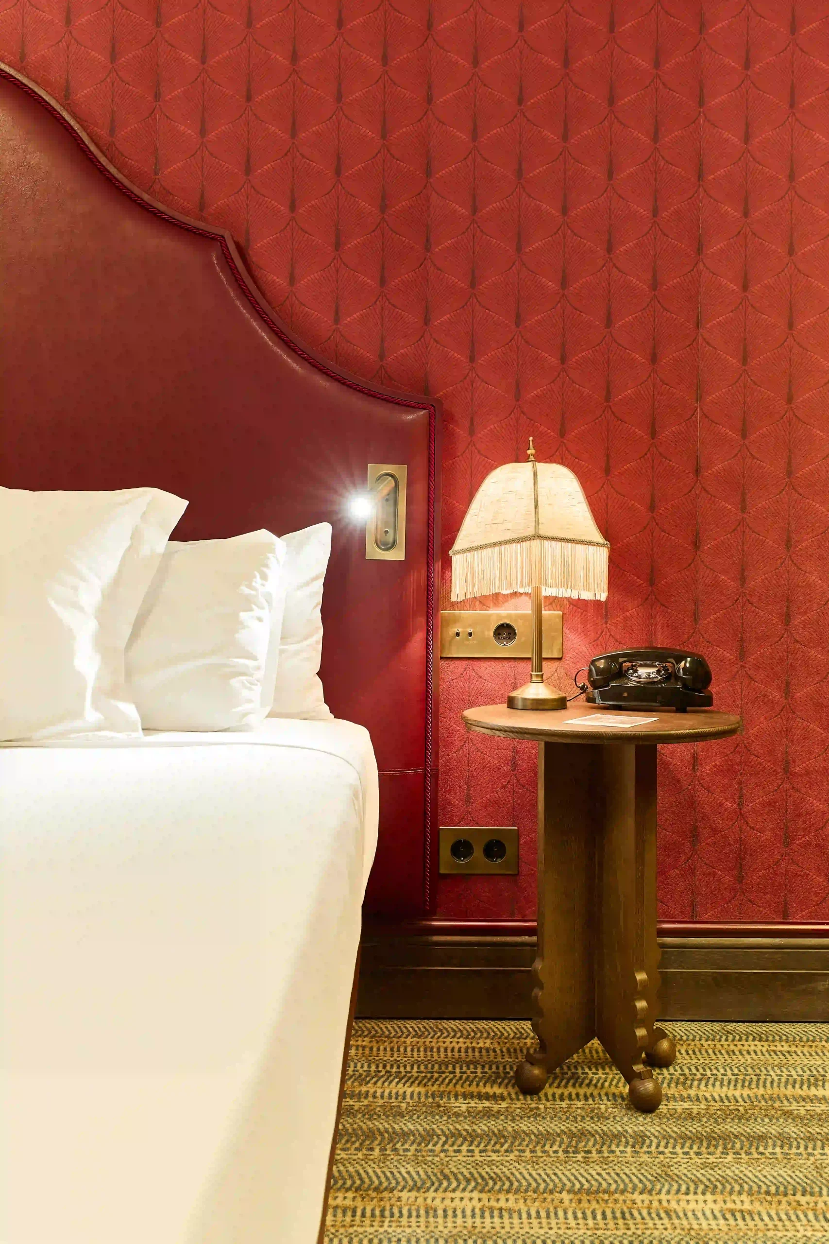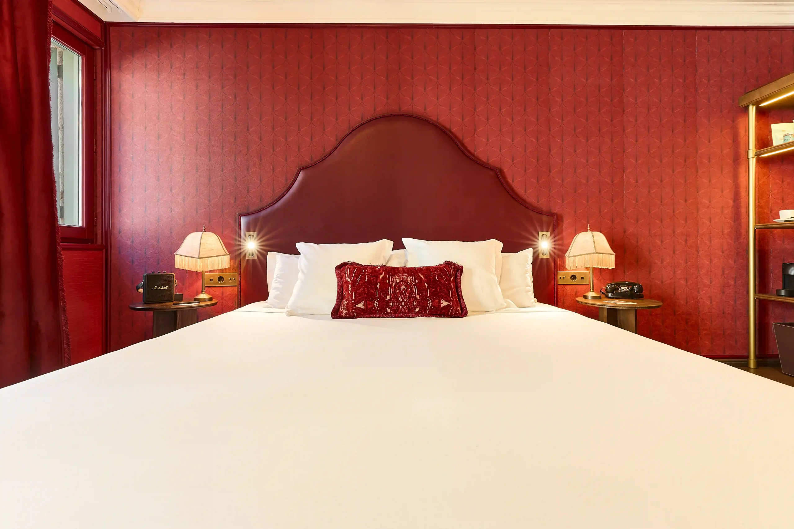 El Hotel España cuenta con 82 habitaciones de estilo contemporáneo, luminosas y acogedoras. Actualmente estamos inmersos en un proceso de transformación que marcará una nueva etapa del hotel, en la que volveremos a conectar con su esencia original. Poco a poco iremos recuperando el legado modernista del arquitecto Lluís Domènech i Montaner: regresarán los intensos tonos burdeos, los ricos terciopelos y el espíritu del Art Nouveau, reflejado en muebles de formas orgánicas y detalles llenos de carácter.
